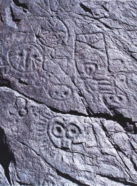 除了上面列舉的巖畫密集區(qū)域,尚有一些頗具代表性的巖畫地點值得一提。它們是云南的路南、四川的珙縣、西藏的日土、甘肅的嘉峪關(guān)、黑龍江的海林、江蘇的連云港、福建的華安、臺灣的萬山等。盡管這些地點的巖畫數(shù)量不太多,卻代表了一個特定的區(qū)域,使中國古代巖畫分布上的環(huán)狀結(jié)構(gòu)得以形成。例如,1985年在西藏日土縣首次發(fā)現(xiàn)的50余幅巖畫,就填補了“世界屋脊”上巖畫分布的空白。江蘇連云港將軍崖和福建華安仙字潭巖畫上的深奧圖案,則使數(shù)量相對稀少的東南沿海巖畫具有了一種獨特的神韻。
