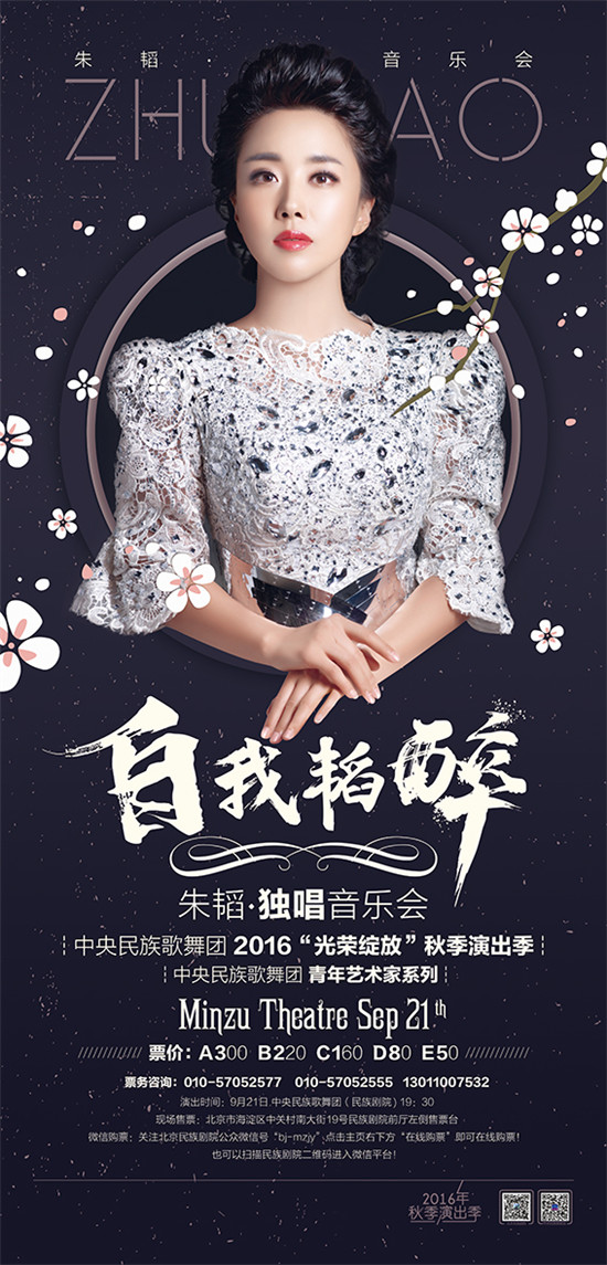 9月21日,中央民族歌舞團(tuán)青年藝術(shù)家系列將推出女中音歌唱家朱韜獨唱音樂會《自我韜醉》。作為女中音歌唱家,朱韜演唱的曲目涉及面廣,中外古今都有染指,既能唱“卡門”也能唱“小河淌水”,是一位可塑性很強(qiáng)的歌者。她將用自己的歌聲,讓觀眾陶醉在美麗的秋夜。