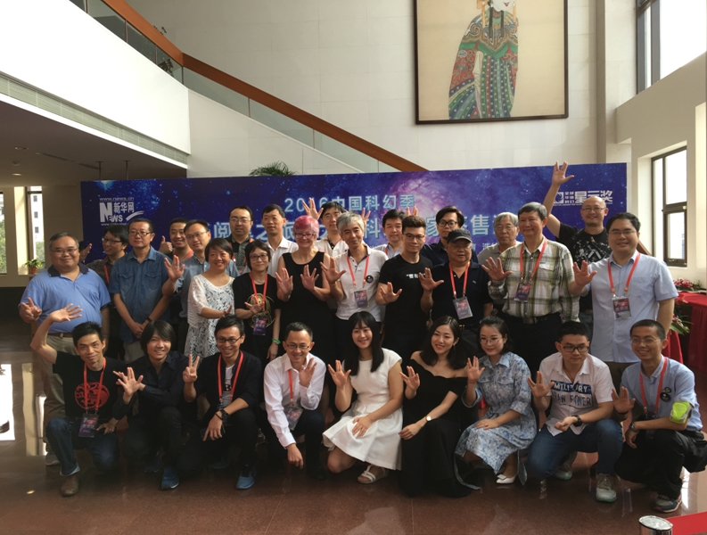 第二環(huán)節(jié)請(qǐng)來科學(xué)家和科幻作家對(duì)話,著名心理學(xué)家和劉慈欣關(guān)于人工智能的對(duì)話成為一大亮點(diǎn);第三環(huán)節(jié)同壹天公司一起,請(qǐng)來中外科幻電影從業(yè)者,特別是美國(guó)好萊塢特效大師,進(jìn)行了一場(chǎng)水平很高的關(guān)于發(fā)展國(guó)產(chǎn)科幻電影的演講會(huì)。他團(tuán)隊(duì)中的新華網(wǎng)科普信息化事業(yè)部總監(jiān)付方明、“科幻空間”項(xiàng)目負(fù)責(zé)人李軼男,同他一樣是“忘命徒”,不僅會(huì)前幾個(gè)月忘命奔波,會(huì)議期間更是累壞了身體,付方明“失聰癥”發(fā)作,醫(yī)生警告他若繼續(xù)熬夜,耳朵不保。他顧不得這些,繼續(xù)日夜操勞,成為大會(huì)組織事實(shí)上的主心骨、“平衡器”,李軼男累得失聲,在大會(huì)圓滿結(jié)束后,為維持散場(chǎng)秩序,還被人狠狠地咬了一口。壹天文化工作組,默默奉獻(xiàn),不僅為論壇準(zhǔn)備了一組電影界人士高端對(duì)話,為頒獎(jiǎng)典禮奉獻(xiàn)了一個(gè)很受歡迎的“銀河之外”節(jié)目,還承辦了盛大的中外嘉賓歡聚一堂的高檔宴會(huì)。開幕式、國(guó)際論壇、作家集體簽名售書及頒獎(jiǎng)典禮完美無暇,在完美無暇背后藏著籌辦三方工作人員的汗水、淚水及無以言表的極度辛勞,這是以完美主義者姚予疆兄弟為首的三個(gè)主辦方團(tuán)隊(duì)共同完成的杰作,必將永載史冊(cè)!