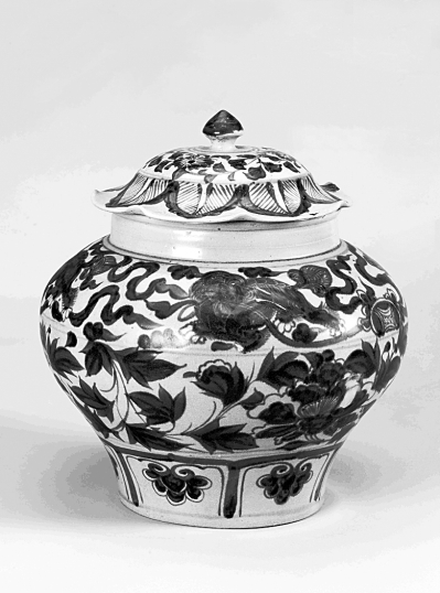 玉溪市博物館藏玉溪窯青花獅子滾繡球紋蓋罐