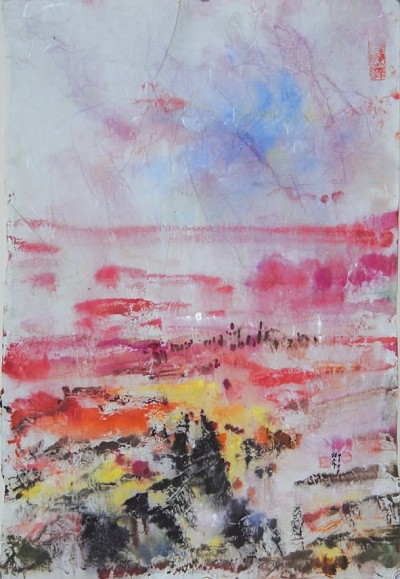 柴祖舜在心象畫上的探索,一晃也已十多年,其風(fēng)格日漸成熟。觀《語》 《春瞬》 等柴祖舜早期的心象畫,人們還能辨出隱藏在畫中的觀音像、老虎頭等圖像。這是一種抽象與具像相融合的表現(xiàn)形式。評(píng)論認(rèn)為,這些畫中可以看出:藝術(shù)家將自己過去用于寄托思想情感的傳統(tǒng)題材圖像加以分解,將局部的形象巧妙地融合在抽象的圖形之中。在線條、墨暈、色彩、皴染自由從容的游走中,涌動(dòng)的是激情和睿智。這些作品試圖為觀眾打開一個(gè)天馬行空的想象空間,任人憑借自己的知識(shí)、經(jīng)驗(yàn)去解讀。