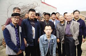 黃莊村的鄉(xiāng)親們確實都在等著呢,好多人老早就聚集在吳家過道前,并且打出了“熱烈歡迎馬季弟子回恩師故鄉(xiāng)”的橫幅,道出全村人迎候這批特殊客人的激動心情。車子進村時,面對黑壓壓一片人群,我對姜昆說:“老宅過道的路不太好走,您就在車?yán)镄菹??!苯フf:“父老鄉(xiāng)親們這么熱情,我哪能不下車!”他抄起拐杖,第一個走下車去。隨后,馬東也跟著從車?yán)锵聛?,與圍攏過來的人們緊緊握手。人群中有人喊:“姜昆,是姜昆,這回可看到真人了!”“馬東,馬東,歡迎你回家!”劉偉、王謙祥、李增瑞等人也紛紛走下車來,與鄉(xiāng)親們見面。