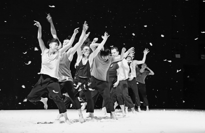 2008年之后,田戈兵進(jìn)入了一個(gè)新的轉(zhuǎn)折。以前他作品中的癲狂拼貼、繁雜道具消失了,代之以最低限度的裝備。因陋就簡(jiǎn)的簡(jiǎn)潔更為神秘。比如2010年的作品《朗誦》,一群男演員以各種身體姿勢(shì)朗讀著各種公共文本,直至進(jìn)入酣暢淋漓的自由境界。歷史的朗讀姿態(tài)被提示,被瓦解,觀眾在前所未有的上下文中面對(duì)現(xiàn)實(shí)。演出的最后,舞臺(tái)上大雨滂沱,演員在慢動(dòng)作的微笑里邁著正步,在汗水中徒勞地獲取朗誦的高潮,之后轟然倒地。那一年在草場(chǎng)地“生活舞蹈工作室”的兩場(chǎng)演出震驚了所有人。這部作品當(dāng)時(shí)只是作為藝術(shù)節(jié)的觀摩作品,沒有在國(guó)內(nèi)的任何劇場(chǎng)正式上演,但并不妨礙其生命力。它可以被修改、由不同的人重新演繹,甚至可能根據(jù)不同的演出場(chǎng)地進(jìn)行因地制宜的改變。而不是像電影、電視劇這樣的一次性高成本的制作,放映之后就無法再進(jìn)行調(diào)整與再創(chuàng)作。2013年,受到荷蘭戲劇節(jié)的邀請(qǐng),《朗誦》重新登上舞臺(tái),在荷蘭的幾大城市以及德國(guó)慕尼黑室內(nèi)劇院巡演,引起轟動(dòng)。