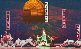 在這部舞劇壓軸的最后一幕,是在中國的舞臺上第一次把“陜甘邊蘇維埃政府”的牌子掛在了舞臺中央的陜北窯洞前?!耙驗橹袊F(xiàn)代以來,作為政府行為提倡婦女解放的源頭就在這里。 ”陳健驪談到這個構思特別強調說,“重情重義、敬畏祖先是中國的優(yōu)秀傳統(tǒng),先人的業(yè)績我們不應輕易忘記,作為晚輩和知情者,我有責任把歷史的真相還原在舞臺上,以便承前啟后、傳之永遠。 ”