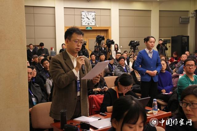 11月28日,中國作家協(xié)會第九次全國代表大會新聞發(fā)布會上,中國作協(xié)副主席何建明答記者問。
