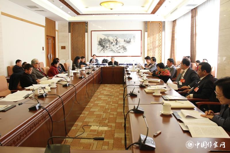 12月1日下午,中央國家機(jī)關(guān)代表團(tuán)分組討論,莫言等作家參加。