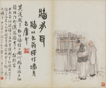 作為刻銅藝術(shù)最有影響力的倡導(dǎo)者,陳師曾和姚茫父亦是至交,經(jīng)常書(shū)畫(huà)唱和。1923年9月17日,陳師曾離世;姚茫父不僅寫(xiě)下七言律詩(shī)《哭師曾》予以悼念,還把《北京風(fēng)俗圖》和自己所題的34首詞合在一起,題為《菉猗室京俗詞題朽道人畫(huà)》 ,作為二人友誼的紀(jì)念。