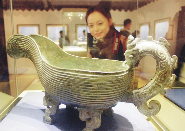 近日,“煙云四合——清代蘇州顧氏的收藏特展”在江蘇蘇州博物館展出。展覽展出故宮博物院、中國國家圖書館、上海博物館、南京博物院等國內(nèi)9家文博機構(gòu)的顧氏所藏書畫、古籍、碑帖、文房、青銅器等精品84件。內(nèi)容涵蓋了宋、元、明、清的書法、繪畫、古籍、碑帖及文房用品、顧氏一門手跡等。圖為觀眾在特展上參觀“西周齊侯匜” 。