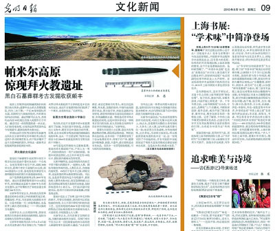 2013年8月14日,《光明日報(bào)》率先報(bào)道拜火教遺址發(fā)掘事件的版面圖。