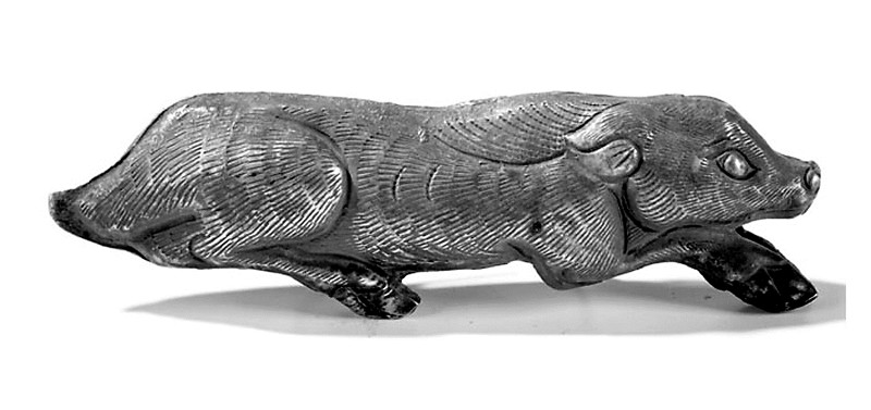 據(jù)永陵博物館館長(zhǎng)彭建平介紹,此次從四川博物院借出的共有13件文物,均系永陵1942-1943年發(fā)掘出土。其中,屬于國(guó)家一級(jí)文物的“國(guó)寶”就有4件,它們分別是謚寶、玉大帶、銀缽和銀豬。此外,還有銀搔手、銀盒、銀頤托、銀刀鞘、水晶珠、小玉片、琥珀等9件三級(jí)文物。
