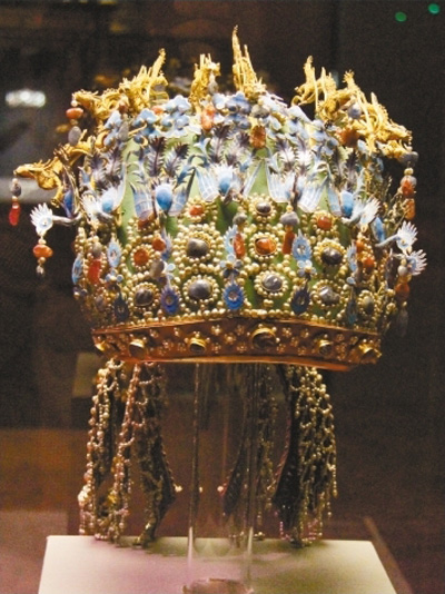 在中國,珍珠被用作裝飾的歷史,可遠溯至周朝初始,據(jù)《格致鏡原·妝臺記》記載,周文王曾用珍珠裝飾發(fā)髻。秦漢之后,珍珠飾品迅速普及,帝王將相、達官貴人無不以珍珠裝飾為榮。最好的例證是北京定陵出土的明萬歷時的龍冠和鳳冠,其上都裝飾了規(guī)模不等的天然珍珠,向世人展示著古代宮廷工藝的豪奢,如現(xiàn)為中國國家博物館收藏的孝端皇后的“九龍九鳳”冠(見圖一),龍鳳口中都銜有包含珍珠在內(nèi)的珠寶,冠面更鑲嵌珍珠5000余顆。至清朝,皇家對天然珍珠的喜愛顯然到了極致。傳世的一件清代道光年間的龍袍,前后兩面的9條龍圖案均由數(shù)以萬計的天然淡水小珍珠繡制而成,制作可稱巧奪天工。