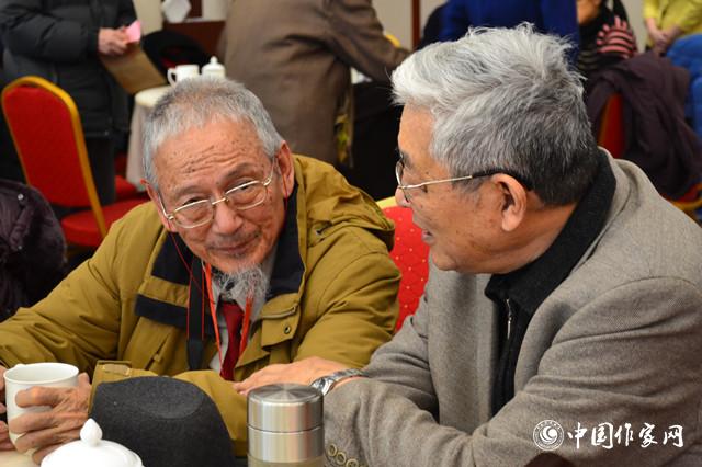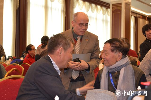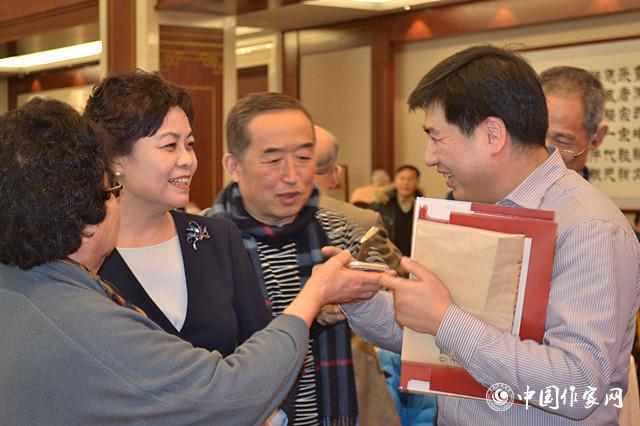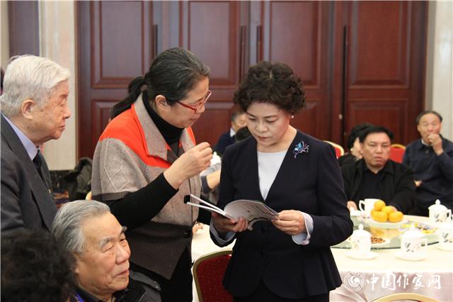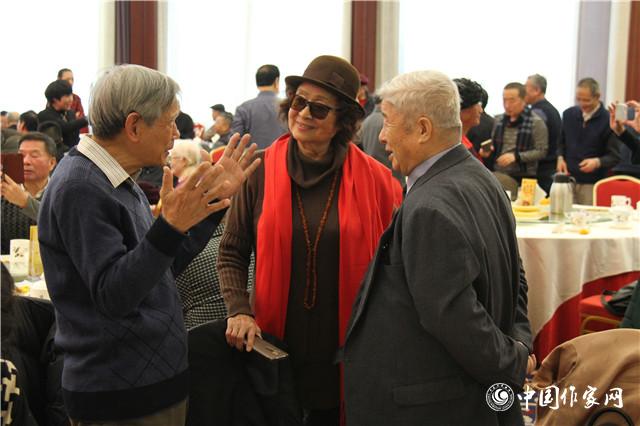 茶話會上,中國作協(xié)黨組書記處同志來到老作家、老同志中間,和新老朋友一一握手,暢敘情誼,共談文學(xué),他們所到之處,不時傳來陣陣歡聲笑語。有的老作家拉著鐵凝、錢小芊談文學(xué)、說友情,也給中國作協(xié)新一年工作提出自己的建議;有的則拿出自己剛出版的作品,贈送給現(xiàn)場的親朋好友;還有的三五好友相聚,紛紛取出手機(jī)拍照,記錄下這美好難忘的一刻……