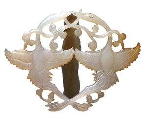 白玉雙鶴銜靈芝紋佩(金)