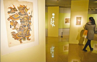 23日,媒體記者在北京中國美術館參觀展出的楊柳青年畫作品。