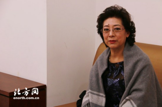 女中音歌唱家關(guān)牧村接受記者的采訪(fǎng)