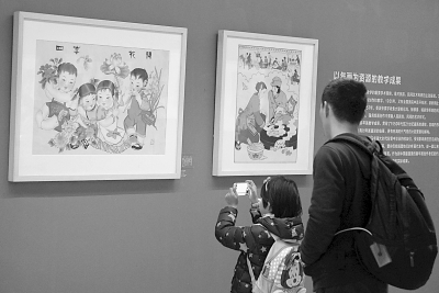 1月31日,觀眾在中國美術(shù)學(xué)院美術(shù)館欣賞楊柳青年畫《四季花開》。當(dāng)日,《年畫迎吉》特展在杭州的中國美術(shù)學(xué)院美術(shù)館開展,展覽由“中國美術(shù)學(xué)院年畫收藏與教學(xué)文獻(xiàn)展”和“蘇州桃花塢木版年畫展”兩部分組成,展出國內(nèi)各種風(fēng)格的年畫400余幅。 施健學(xué)攝/光明圖片
