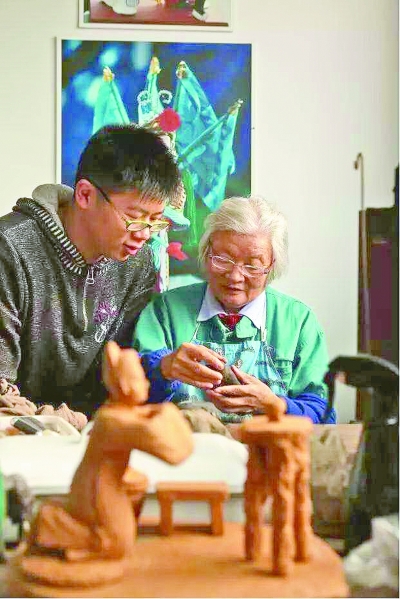 喻湘漣膝下有兩個(gè)女兒,大女兒因?yàn)橛惺旨沧霾涣耍畠簩?duì)泥人技藝沒(méi)興趣,可這門(mén)手藝總要傳下去。如此,喻湘漣便把希望寄托在了外孫華天驊身上。帶著小小的私心,喻湘漣把1990年出生的外孫從小就帶在身邊,讓他跟著自己“捏泥巴”,希望用耳濡目染的方式讓外孫對(duì)這門(mén)手藝感興趣,為這一瀕臨失傳的技藝留下一條根脈。華天驊大學(xué)畢業(yè)后,回到外婆身邊,正式開(kāi)始學(xué)習(xí)泥人捏塑。