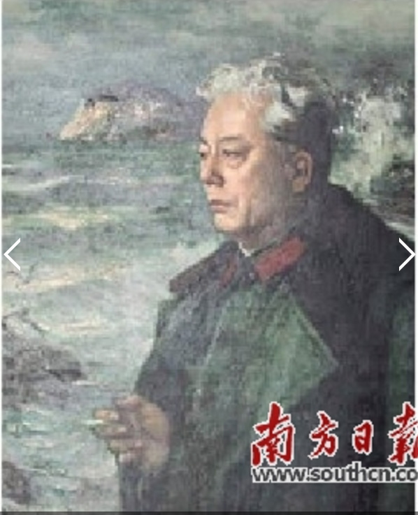 梁老位于廣州軍區(qū)政治部某干休所的住處,有一幅半人高的油畫。畫中,一個(gè)身披軍大衣、身著軍裝的英武漢子眉頭緊鎖,在驚濤駭浪邊傲然挺立,正陷入沉思。這是上世紀(jì)50年代,一位畫家朋友特意給他畫的人物肖像。有意思的是,畫中的梁信幾乎沒有文人的影子,倒是多了幾分武將的錚錚鐵骨。