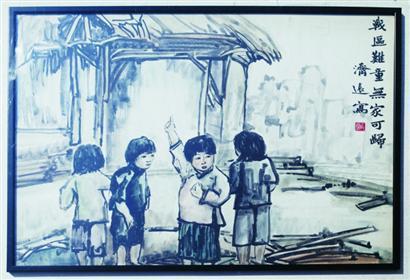王濟(jì)遠(yuǎn)繪《戰(zhàn)區(qū)難童無(wú)家可歸》水墨畫(huà)