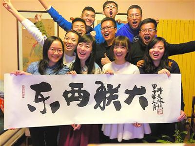 ◆第一期東西聯(lián)大學(xué)生合影,后排右一為白巖松,題字韓美林。 (資料照片)