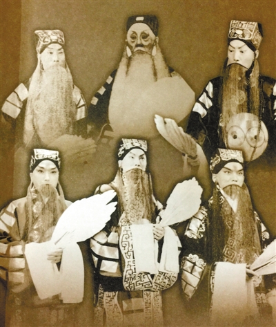 譚鑫培、譚小培、譚富英、譚元壽、譚孝曾、譚正巖演出《空城計(jì)》劇照合圖。