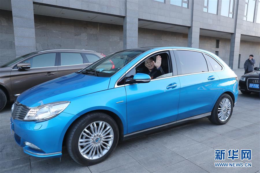 3月1日,全國(guó)政協(xié)委員黃力在駐地北京會(huì)議中心報(bào)到后,駕駛純電動(dòng)汽車離開。 當(dāng)日,參加全國(guó)政協(xié)十二屆五次會(huì)議的委員陸續(xù)抵達(dá)駐地報(bào)到。新華社記者邢廣利攝
