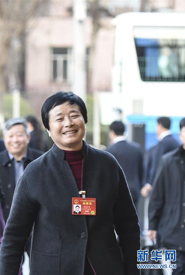3月2日,出席十二屆全國(guó)人大五次會(huì)議的遼寧代表團(tuán)乘坐火車抵達(dá)北京。這是全國(guó)人大代表岳喜芳抵達(dá)駐地亞洲大酒店。 新華社記者吳曉凌 攝