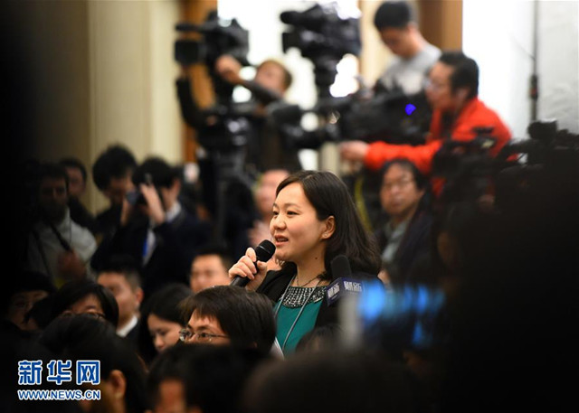 3月4日,十二屆全國人大五次會議在北京人民大會堂舉行新聞發(fā)布會。大會發(fā)言人傅瑩就大會議程和人大工作相關的問題回答中外記者的提問。這是記者在提問。新華社記者 陳曄華 攝