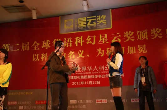 由世界華人科幻協(xié)會舉辦的首屆全球華語科幻星云獎頒獎典禮在成都學(xué)府影院舉辦。劉慈欣因出版《三體》等眾多優(yōu)秀科幻作品及韓松因出版《紅色海洋》等眾多優(yōu)秀科幻作品,而雙雙獲得最佳科幻作家獎,王晉康的《十字》和香港作家譚劍的《人形軟件》獲最佳長篇小說獎,姚海軍獲最佳科幻編輯獎。