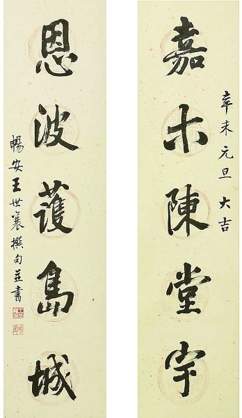 1990年秋,伍嘉恩在香港有一個(gè)專門陳列明式家具的空間,還只有英文名字,王世襄為她題贈(zèng)了中文名“嘉木堂”。第二年春節(jié),王世襄又特別為伍嘉恩寄去一副親筆書寫的楹聯(lián):“嘉木陳堂宇,恩波護(hù)島城?!奔惹度胨偷赇佒?,也有慰勉和祝福的意思。他知伍嘉恩中文不好,寫了一封英文信附在后面,為她仔細(xì)講解了楹聯(lián)的意思。
