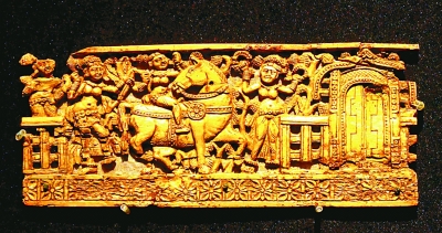 阿富汗是古代絲綢之路上將中國、印度與希臘、羅馬以及埃及聯(lián)系在一起的重要一環(huán),貝格拉姆正是其中一處交通要沖,也是阿富汗最重要的考古遺址之一。考古學(xué)家在這里發(fā)現(xiàn)了兩個密封于2000多年前的房間,房門用磚封閉并且涂上了灰,以使人們徹底遺忘。研究表明,它們是用來儲存貨物的巨大庫房。作為家具的飾板,大量象牙雕刻被保留下來,這些帶有濃郁印度風(fēng)格的雕刻,讓我們得以窺見2000年前的人們高超的藝術(shù)創(chuàng)作水準(zhǔn)。