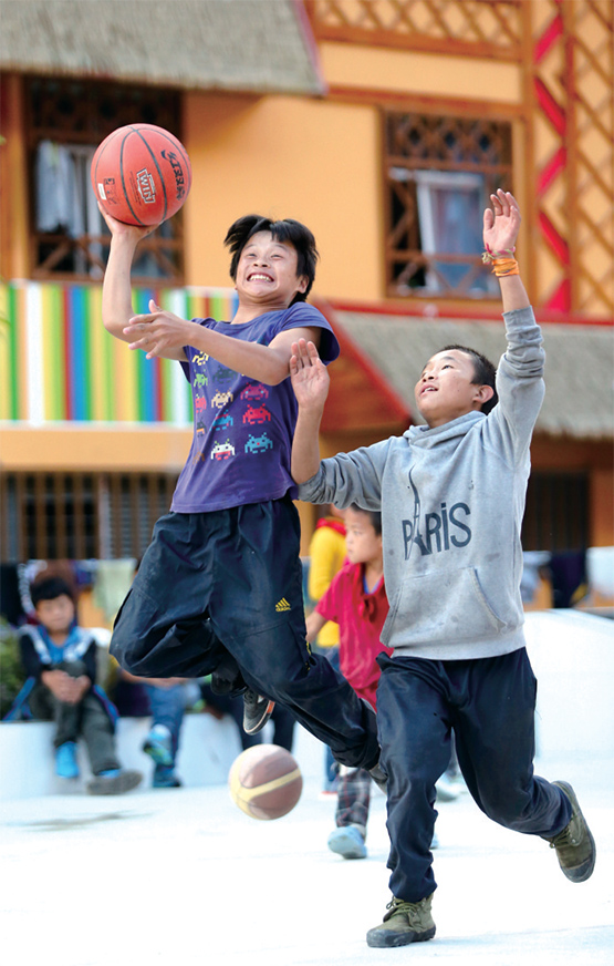 吳然:起初也不是這種寫法。我甚至想寫成一部童話作品,讓獨(dú)龍江“自己講述”,還有意加進(jìn)現(xiàn)代生活元素,讓浪花們互發(fā)“微信”。寫了一些,覺得忐忑。發(fā)給好友、批評家冉隆中,被他批得一塌糊涂。我認(rèn)真地思考了冉隆中的批評,翻著采訪本,如同梅西子校長說的,像“找羊肚菌”(一種野山菌)那樣去發(fā)現(xiàn),去認(rèn)識(shí)。也從采訪記錄中重新回到現(xiàn)場,回到水聲喧嘩、爭相向我訴說的獨(dú)龍江……于是我調(diào)整了思路,抓住教育這個(gè)“牛鼻子”,從獨(dú)龍族第一個(gè)識(shí)文認(rèn)字的孔志清寫起,從點(diǎn)燃獨(dú)龍江文明火種的第一個(gè)小學(xué)——巴坡小學(xué)寫起,一直寫到中心學(xué)校的“小小夢之隊(duì)”到西安參加“2015‘姚基金’希望小學(xué)籃球季”比賽奪得獎(jiǎng)牌……我找到了一個(gè)切入點(diǎn),那就是獨(dú)龍江小學(xué)(也許是邊遠(yuǎn)山區(qū)許多小學(xué))的一個(gè)特點(diǎn):“放月假”。這是因?yàn)楠?dú)龍江小學(xué)都是全日制寄宿學(xué)校,又因?yàn)閷W(xué)生離學(xué)校一般都比較遠(yuǎn),實(shí)行的是“月假”,也就是一個(gè)月放三次假,10天一次,假期三天。在雨水多的季節(jié),也會(huì)個(gè)把月放一次八九天的“月假”,在路遠(yuǎn)的村寨,老師還要親自把學(xué)生安全地送回家。