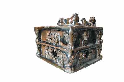 宋代褐釉雕塑雙層雕塑硯