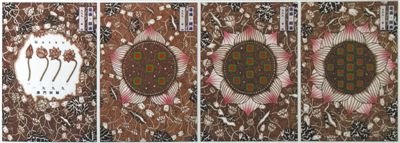 圖為車世欽設(shè)計的《蓮滿—圓滿系列》,獲慶祝澳門回歸祖國十五周年海報設(shè)計展金蓮花大獎。