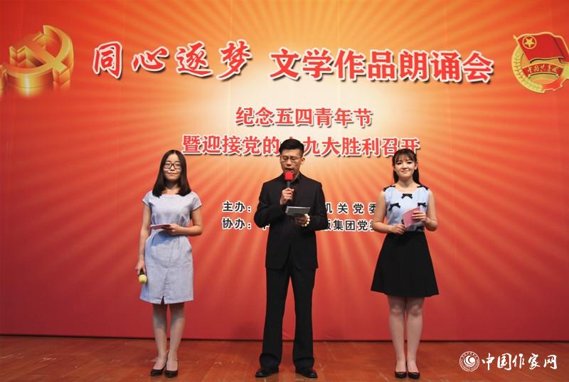 “同心逐夢”,這是繼“2015年夢想燭照未來”、“2016年春之和聲”兩場文學(xué)作品朗誦會之后,中國作家協(xié)會機(jī)關(guān)黨委和中國作家出版集團(tuán)黨委組織的第三次文學(xué)作品朗誦會。中國作協(xié)副主席、機(jī)關(guān)黨委書記吉狄馬加出席朗誦會并致辭,中國作協(xié)機(jī)關(guān)及所屬各部門各單位黨支部負(fù)責(zé)人、青年職工代表、魯迅文學(xué)院學(xué)員等參加活動。