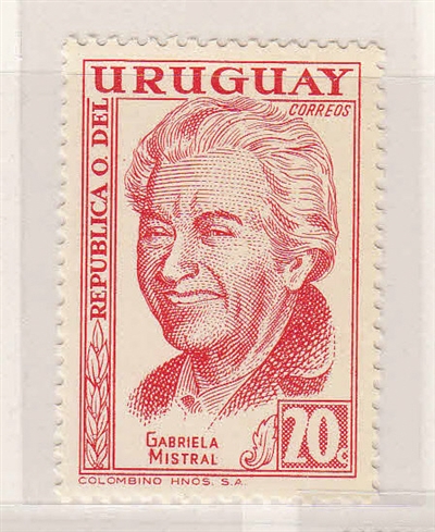 布列拉·米斯特拉爾 (1889-1957),智利詩人、教育家、外交家。她的詩歌情感深沉博大,具有濃郁的南美特色,另一位智利詩人聶魯達稱贊米斯特拉爾的詩歌“達到了永恒雪山的高度”。一九四五年,米斯特拉爾以“那富于強烈感情的抒情詩歌,使她的名字成了整個拉丁美洲理想的象征”而獲得諾貝爾文學(xué)獎,成為拉丁美洲第一位諾貝爾文學(xué)獎獲得者。