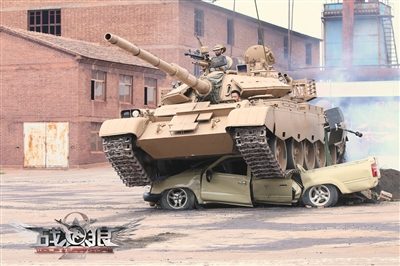 拍攝前后共用到10輛坦克,還做了兩個(gè)用來炸的,每輛大概有20多噸。想拍坦克、想指揮坦克,就必須要學(xué)會駕駛坦克,要知道坦克的功能,優(yōu)劣性、操縱范圍,所以我專門去學(xué)了開坦克。片中關(guān)于坦克,有漂移、爆炸、翻車、沖撞,而且真的是開一輛坦克去撞另外一輛坦克。