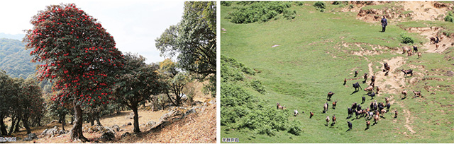圖左:故鄉(xiāng)的樹 圖右:羊群奔跑