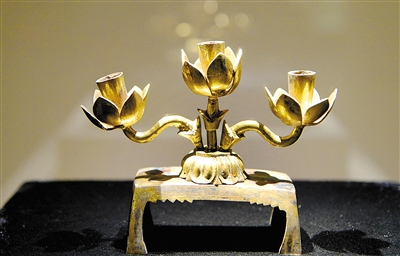鎏金銅蓮花燭臺(tái)(北魏)。
