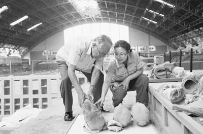 許衛(wèi)紅(右)和袁仲一在秦始皇兵馬俑一號(hào)坑。 資料圖片