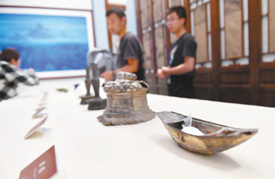 何剛捐贈(zèng)給故宮的銀鏨刻船。 新華社記者 金良快攝