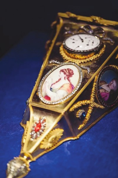 故宮藏18世紀(jì)西洋銅鍍金美人圖花插式掛表。西洋鐘表曾作為西方傳教士的禮物,敲開中國宮廷的大門。明代萬歷時(shí)期,利瑪竇就曾贈(zèng)送兩座自鳴鐘給萬歷皇帝,得到贊賞連連。自此以后西洋鐘表逐漸進(jìn)入宮廷,其中以英國、法國制造為主。這些鐘表利用機(jī)械學(xué)、動(dòng)力學(xué)原理巧妙設(shè)計(jì),以水法、轉(zhuǎn)花、西洋人物等機(jī)械轉(zhuǎn)動(dòng)配以計(jì)時(shí),既精美又華麗,具有典型的西方裝飾藝術(shù)風(fēng)格,更具有陳設(shè)效果。乾隆皇帝尤其喜愛西洋鐘表,更要求清宮造辦處制作精美的御用時(shí)鐘。