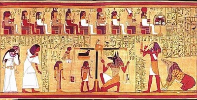 大英博物館所藏的這類埃及文物中,堪稱鎮(zhèn)館之寶的 《亞尼的死者之書》,就是古埃及生死觀的明白表現(xiàn)。死者之書是古埃及常見的隨葬物品。篤信來世的古埃及人用水生植物紙莎草芯制成長長的紙卷,在上面記載死者為獲永生所必經(jīng)的各種磨練、審判、所需的咒文等等并配以插圖,以求死者逢兇化吉,安然到達極樂世界。收藏家佛里斯班士于1887年在尼羅河中游克索西岸的墓室中發(fā)現(xiàn)了 《亞尼的死者之書》,墓主亞尼是距今約3200年前的真實人物。這一死者之書可謂迄今已知以草紙記錄的死者之書中保存最完善、描繪最精美的。其中,最有名的段落是“秤心儀式”:天平上,死者的心臟與正義女神翅膀上的一根羽毛加以比較,心臟若不重于羽毛,則說明死者生前積德,可享永生,否則,心臟便會被畫面右邊的怪物所吞噬,死者沒法進入來世。畫中,有的神在調(diào)整天平的精確度,有的神準備記錄測量,有的神在擔任陪審,一個神與人共存的世界躍然紙上,反映出古埃及人對神靈的虔誠信仰。