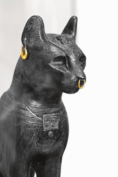 埃及貓神貝斯特雕像。公元前2000年的尼羅河三角洲就有貓神崇拜了,人們不僅給貓神貝斯特造像,在貓去世以后也為它們制作木乃伊。