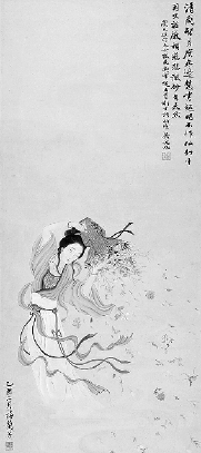 這些作品題材和藝術(shù)樣式等可以劃分為人物、花鳥、梅花(紅梅、墨梅)、扇面、畫稿等類,其中人物類包括觀音、佛祖、達(dá)摩、長眉羅漢、洛神、天女、仕女等,其中以佛像、仕女、觀音為多,分別為9幅、9幅、7幅;梅花的作品最多,約202幅,占館藏其作品總數(shù)的近四分之三,其中著錄為紅梅的56幅,一幅扇面《紅梅》,帶綠梅,署“玉岱先生雅屬”,一面字“潰春痕(九言詩)乙酉夏日玉岱仁兄清屬陳敬弟”。一幅扇面《綠梅花》,署“丁亥仲秋云霞先生雅屬”,一面空白。特別是扇面,計(jì)有79幅,存量數(shù)和畫梅數(shù)都很可觀。