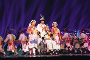 而對于傈僳族群舞《輪椅上傳承的阿尺木刮》來說,編導(dǎo)兼主演余勇興是在用生命傳承和保護(hù)本民族的文化——這位第5代民間藝術(shù)傳承人,5年前在一次深入民間藝術(shù)采風(fēng)的路上,遭遇車禍致使雙腿殘疾。這位坐在輪椅上的傳承人的故事,打動了無數(shù)觀眾。