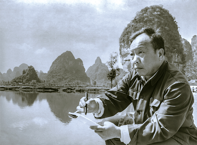 1970年代,宗其香在漓江上寫生