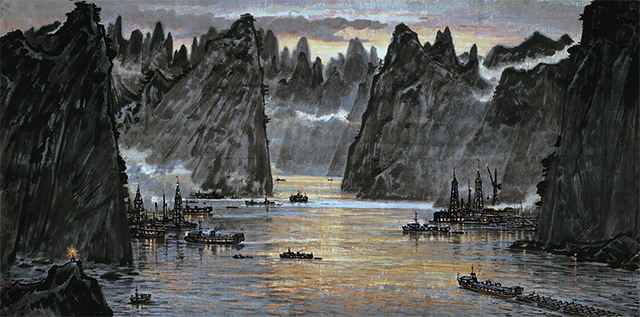 夜色如墨,他用留白與虛影映襯出光的力量,用水墨與色彩將夜幕漸漸“熄燈”。那一瞬間如同意象的通感,連結(jié)了傳統(tǒng)中國(guó)水墨與西方繪畫光影的距離,也留下了跨越中西、跨越時(shí)代的永恒藝境。
