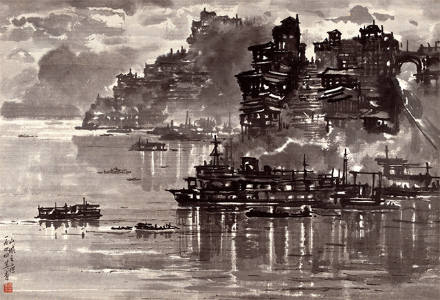 對(duì)于明滅夜色的敏感與鐘愛,和對(duì)于色彩明度的敏感,使宗其香的藝術(shù)在最初走進(jìn)了夜幕的深邃與瑰麗。1939年,22歲的宗其香流亡到重慶求學(xué),考入中央大學(xué)藝術(shù)系。情感的挫折與孤獨(dú)窮困,使他常常于暮色之中徘徊在嘉陵江畔。面對(duì)迷茫幽深的山城與嗚咽流淌的江水,他觸景生情創(chuàng)作了嘉陵江夜景水彩畫。在將夜景水彩畫隨信寄給徐悲鴻后,他得到了徐先生的賞識(shí)和建議:“古人畫夜景只是象征性的,其實(shí)并無光的感受,如《春夜宴桃李園圖》等。你是否試以中國(guó)畫筆墨融化寫生,把燈光的美也畫出來?”由此,在夜景中探尋墨色的豐富變化,捕捉與表現(xiàn)黑暗中光亮的不同層次與色階,使宗其香找到了藝術(shù)獨(dú)創(chuàng)的突破口。