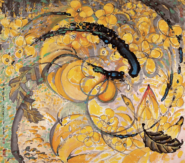 桂林期間,宗其香還創(chuàng)作了諸多不同風(fēng)格的水彩寫生,雖景致與風(fēng)貌不同,皆與中國(guó)畫元素、技法緊密結(jié)合,將中西畫法結(jié)合實(shí)驗(yàn),也充分體現(xiàn)了徐悲鴻提出的“古法之佳者守之,垂絕者繼之,不佳者改之,未足者增之,西方畫之可采入者融之”的“引西潤(rùn)中”思想。這一創(chuàng)作實(shí)驗(yàn)理路,一直影響到了宗其香在上世紀(jì)80年代以后現(xiàn)代風(fēng)格的延伸探索,如《榕之露》《南國(guó)秋香》等一批抽象風(fēng)格作品的嘗試,也包括他在學(xué)院教學(xué)中的人物肖像、靜物寫生、燈光人體系列等創(chuàng)新實(shí)踐。